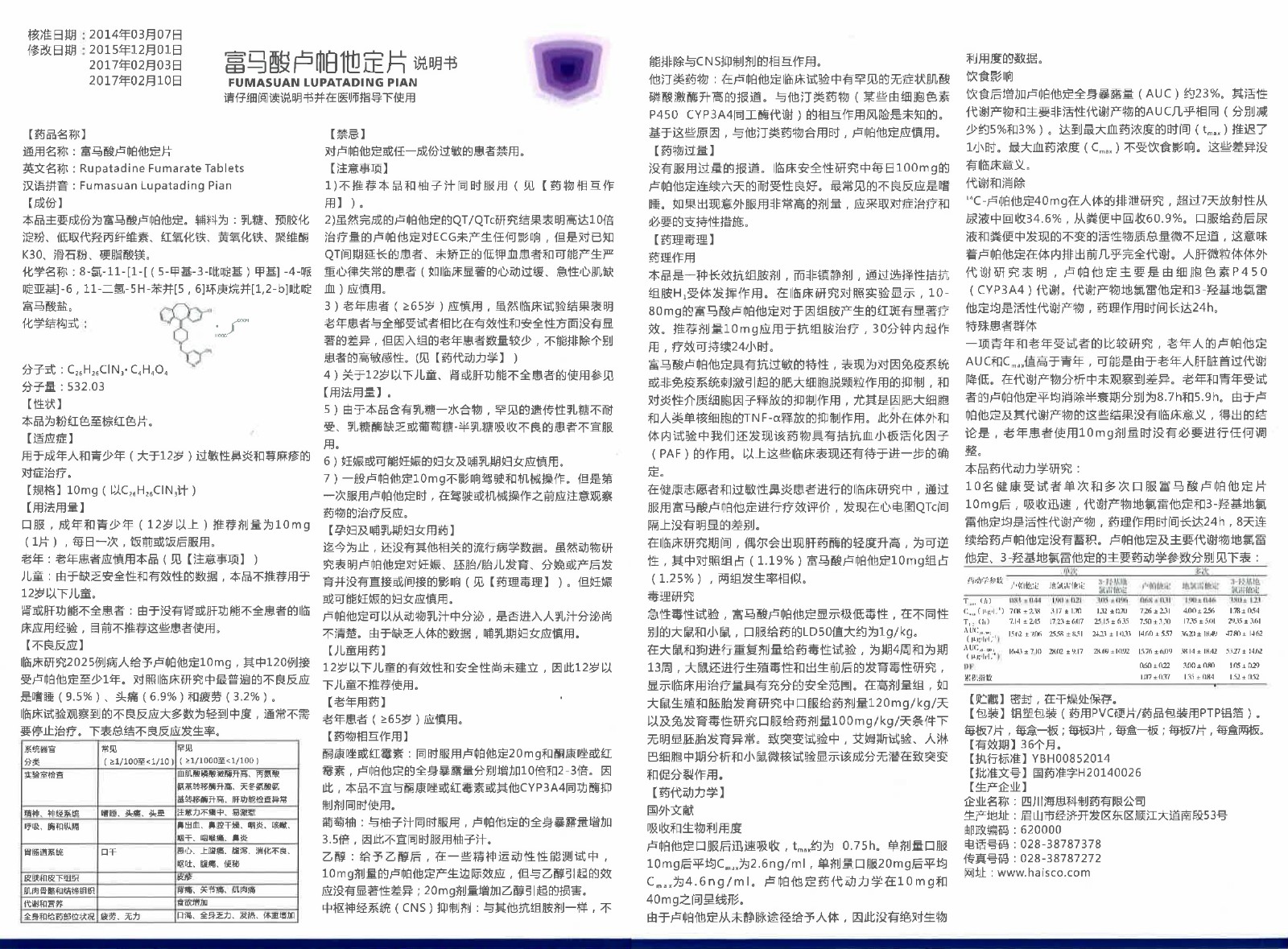 【通用名】富馬酸盧帕他定片